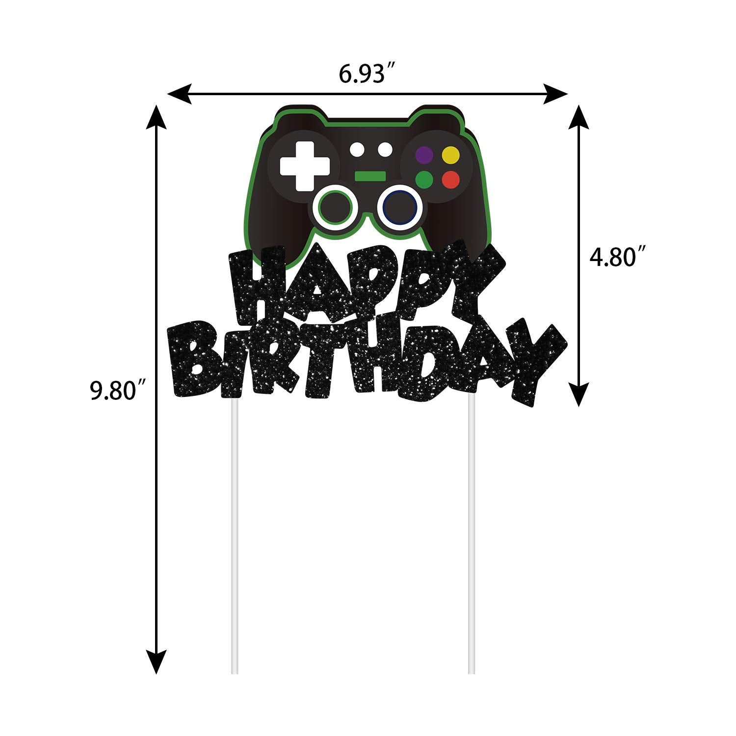 Video Game Cake Topper Glittery Game Controller Happy Birthday Cake Topper Cake Decorations Picks Specification: Size: Approx. 9.8 Inch In Length (Includes Stick Length) And Approx. 6.93 Inch In Width Material: Quality Paper And Food Grade Paper Pick Color: Black As The Picture Shown Wide Range Of Usage: These Video Game Party Toppers Are Perfect For Video Game Themed Birthday Parties, Baby Showers, Dance Party, Gamer Wedding, Bridal Showers, Fruit Trays And Food Snacks On Kids' Party, Other Video Game Themed Party Supplies Decorations.