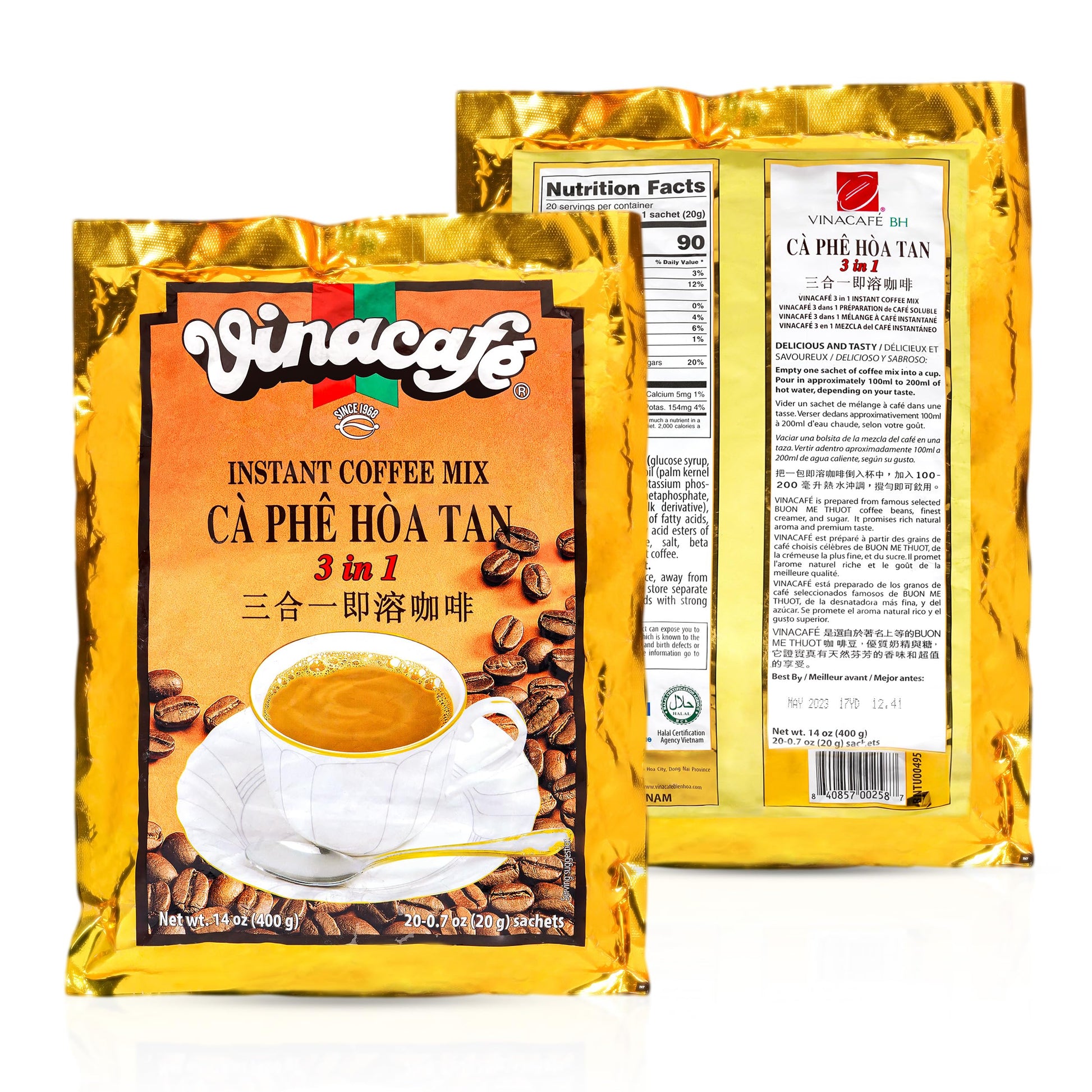- Q: What is Vinacafe 400 Cts Vietnamese Instant Coffee Mix? A: Vinacafe 400 Cts Vietnamese Instant Coffee Mix is a convenient 3-in-1 coffee blend that combines coffee, sugar, and creamer in individual sachets. Each pack contains 20 sachets, making it easy to prepare a delicious cup of coffee at home, in the office, or on the go.