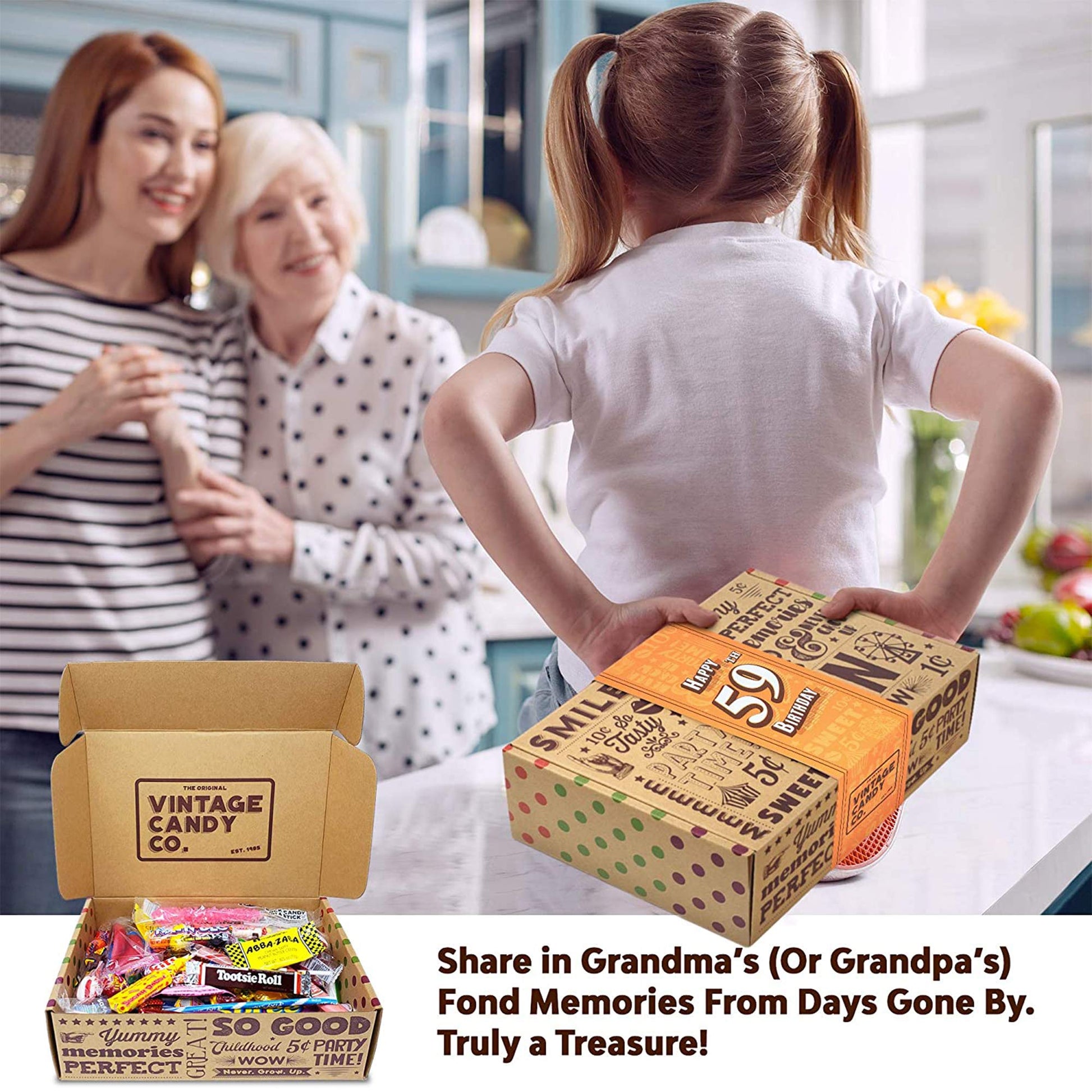 Discover The Ultimate Vintage Candy Box - A Nostalgic Journey Awaits! Looking For The Perfect Gift To Surprise Your Husband, Wife, Best Friend, Sibling, Or Colleague? Your Search Ends Here! Presenting The Vintage Candy Co. 59Th Birthday Special Candy Box - A Delightful Mix Of Nostalgia And Joy, Ideal For Any Candy Enthusiast. Move Beyond The Usual 59Th Birthday Apparel Or Typical 1965-Themed Presents. Our Expertly Curated Candy Box Offers Something Unique And Memorable. Why Our 59Th Birthday Candy Box Stands Out? Here Are The Top 3 Reasons: ? Exquisite 1965 Candy Collection: Our Vintage Candy Box Isn'T Just A Treat For The Taste Buds; It'S A Voyage Back In Time! Filled With 59 Cherished Candy Varieties From 1965, Each Piece Is Fresh And Individually Wrapped, Promising A Delightful Stroll Down Memory Lane. ? Timeless Keepsake Box: Specially Designed For This Milestone, The 10.65'' X 7.5'' X 3.15'' Gift Box, Adorned With A Classic Birthday Newspaper Insert, Is More Than Just Packaging - Its A Keepsake That Adds A Touch Of Nostalgia To Any Party D Cor And Stirs Fond Memories. ? Perfect For Everyone: Whether Its For A Dear Friend Or A Family Member, This Box Is A Versatile Gift That Says Happy 59Th Birthday In The Sweetest Way Possible. Still Thinking? ? Hassle-Free Gifting - It Arrives In A Beautifully Designed Box, Ready To Be Presented! ? Stylish Design - A Great Addition To Any 59Th Birthday Party D Cor, Suitable For All Genders. ? Thoughtful Yet Affordable - A Memorable Gift Thats Easy On The Wallet. Inside The Box: 1 * Captivating 59Th Birthday Vintage Candy Gift Box (3.2Lb) Dont Wait! Click Add To Cart Now And Make The 59Th Birthday Celebration Extraordinarily Memorable!
