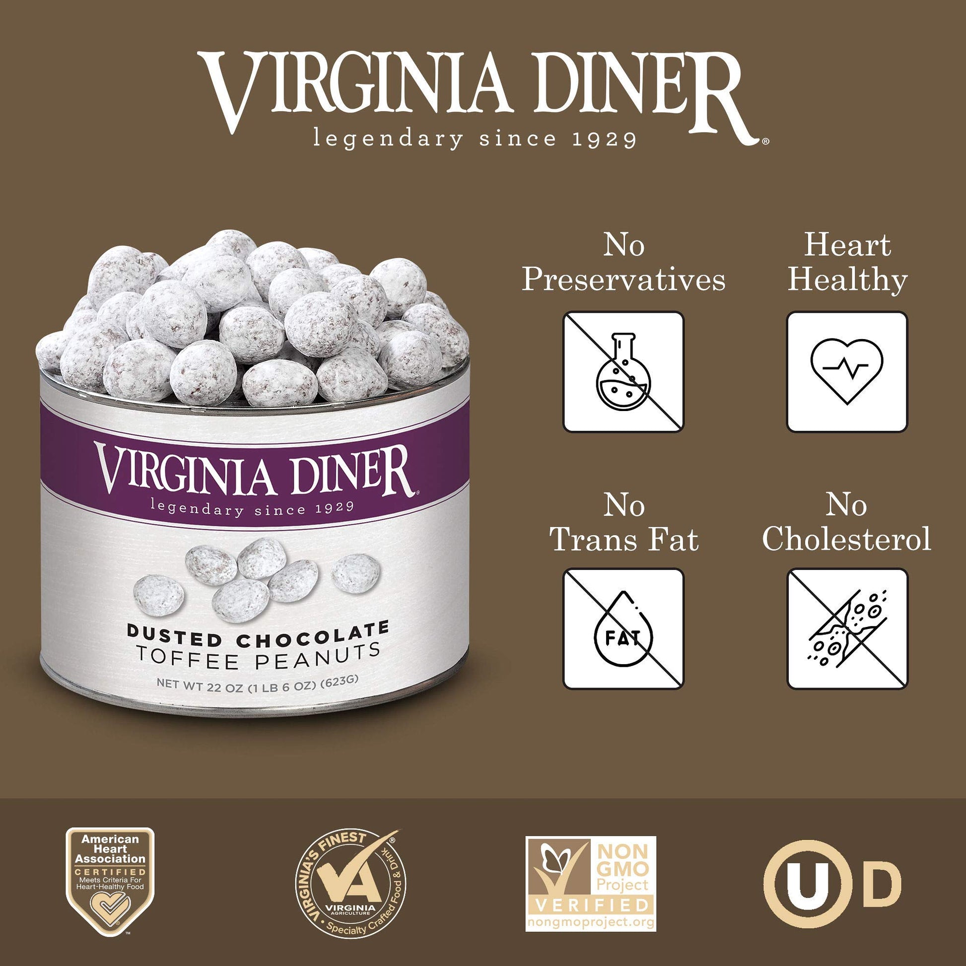 - Q: What makes Virginia Diner's Chocolate Toffee Peanuts unique? A: Virginia Diner's Gourmet Natural Extra Large Dusted Chocolate Toffee Peanuts are unique due to their premium quality, which stems from a special blister roasting process. This method ensures that the peanuts are cooked to perfection in all-natural, Non-GMO oil, resulting in a delightful crunch and exceptional flavor.