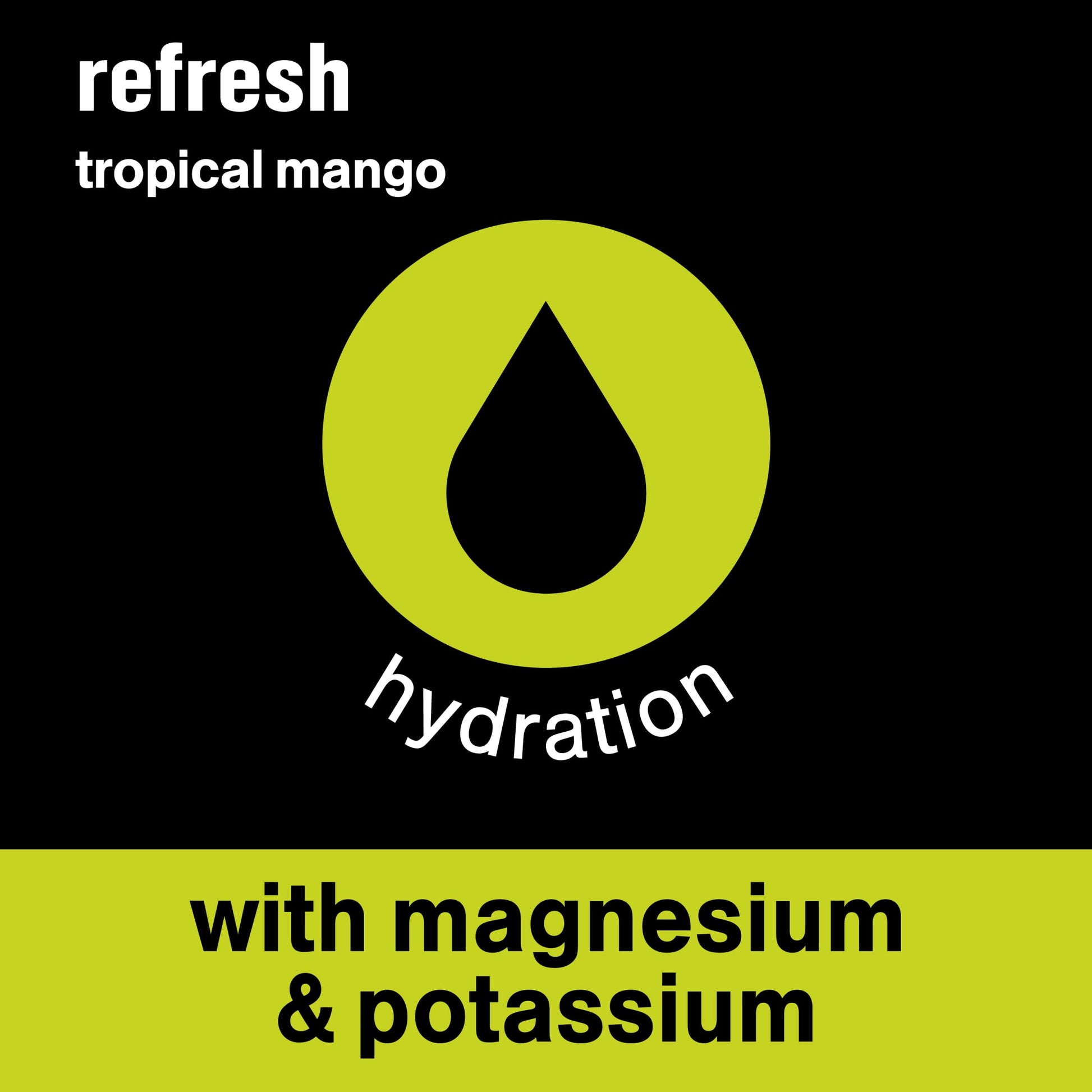 this just in: there’s some good news for good people who like good stuff—there’s more of it (because we put more in there). you know the bottle of liquid beverage that has a color moment everywhere it goes? yeah, you know the one. well, refresh is the same tropical mango flavored water beverage with vitamins and deliciousness, but now it’s a bazillion times more good because of all the nutrient enhancements and its sports-level hydration. and yes, it still has an iconic color moment everywhere it goes (we could never change that). okay, okay, let’s get to the point. what does this upgrade mean for you? it means vitamins. and electrolytes. and more nutrients. which are all good things. with 100 calories per 20oz bottle. it also means this vitaminwater refresh has so many electrolytes, it's sports-drink levels of rehydration. and that's bad news for the people who like bad stuff. so, make sure to pick up a pack if you’re a do-gooder or a good stuff appreciator or a color icon, just like us.