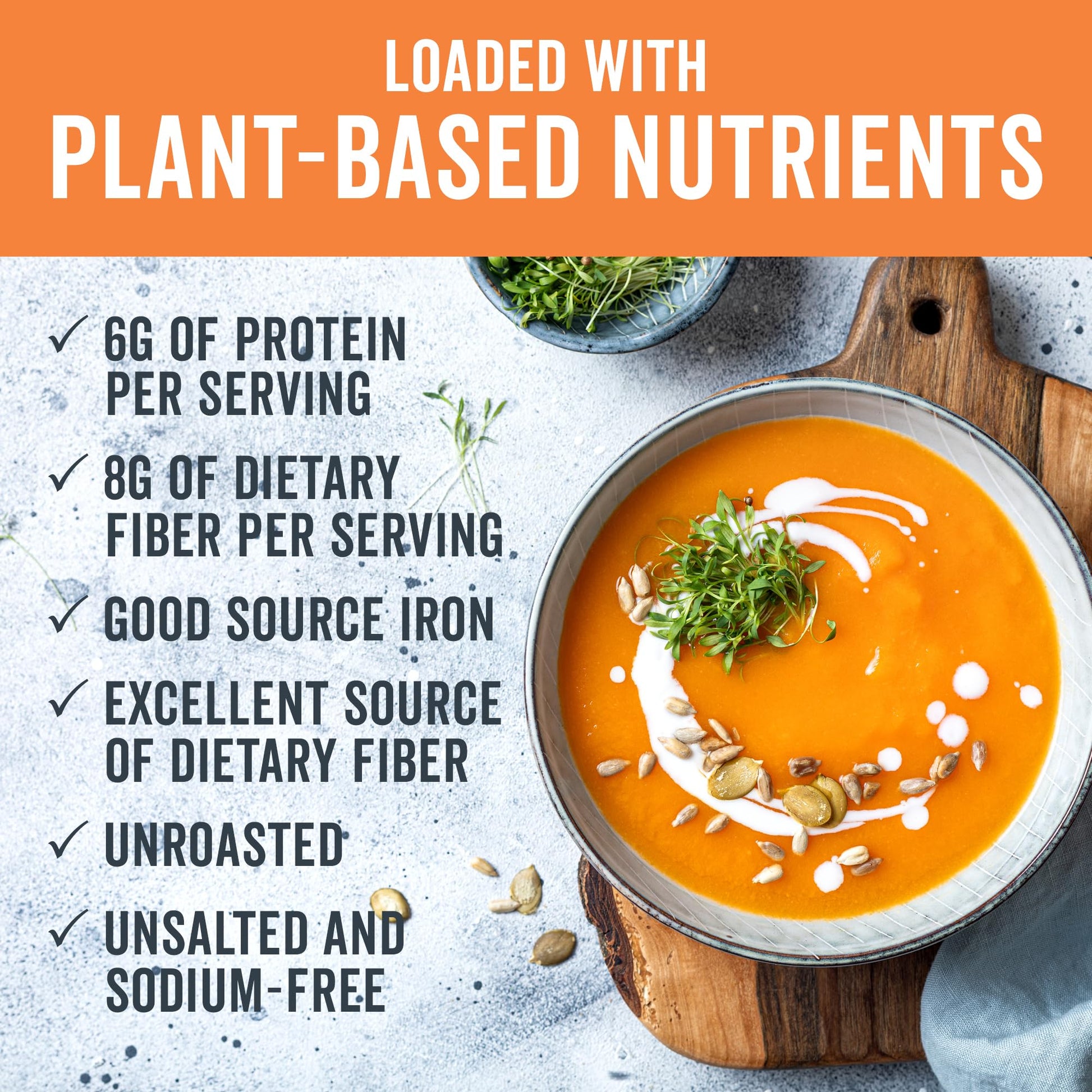 - Q: What are the health benefits of Viva Naturals Organic Pumpkin Seeds? A: Viva Naturals Organic Pumpkin Seeds are rich in plant-based protein, with 6 grams per serving, and are an excellent source of dietary fiber, providing 8 grams per serving. They also contain essential minerals like iron, making them a nutrient-dense superfood that supports overall health.