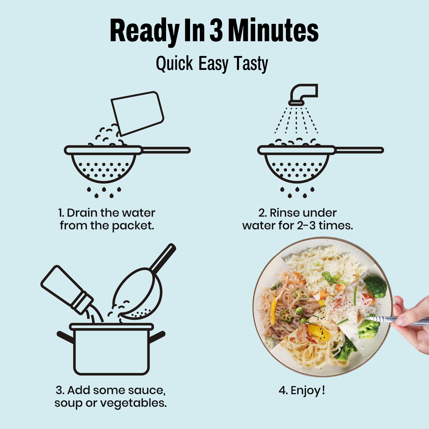Q: How do I prepare VOLO VERO Konjac Noodles?A: Preparing VOLO VERO Konjac Noodles is simple and quick. Just rinse them under cold water, drain, and enjoy them in your favorite dishes like pasta, stir-fries, or soups.