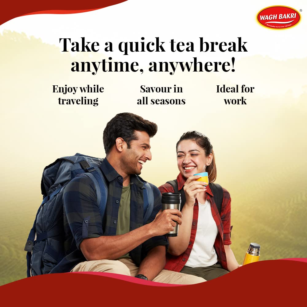 Q: How do I prepare the Wagh Bakri Instant Tea Premix?A: To prepare Wagh Bakri Instant Tea Premix, simply mix the contents of one sachet with hot water or milk, stir well, and enjoy a quick and flavorful cup of tea.