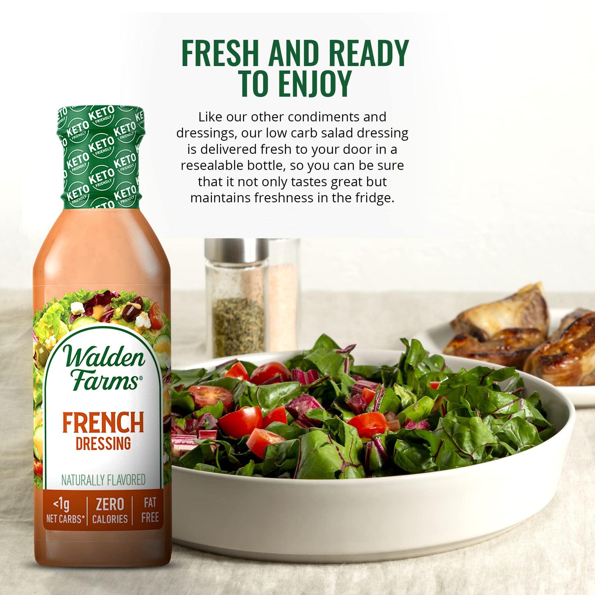 Q: Is Walden Farms French Dressing suitable for a keto diet?A: Yes, Walden Farms French Dressing is keto-friendly as it is calorie-free and contains less than 1g of net carbs per serving, making it a great addition to your low-carb meals.