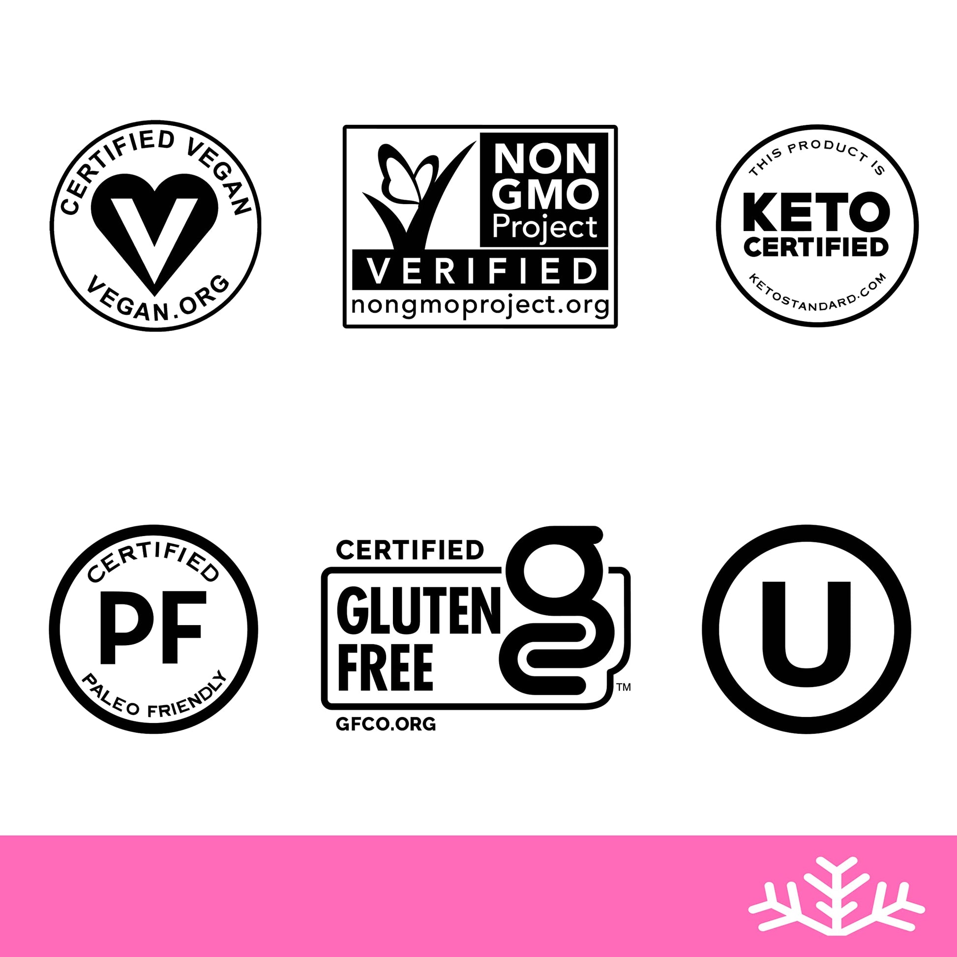 Q: What dietary certifications do these candy chips have?A: The Watermelon KETO Xylitol Candy Chips are Non-GMO Project Verified, Vegan, Keto, OU Kosher, Gluten-free, and Paleo-friendly, catering to a variety of dietary preferences and restrictions.