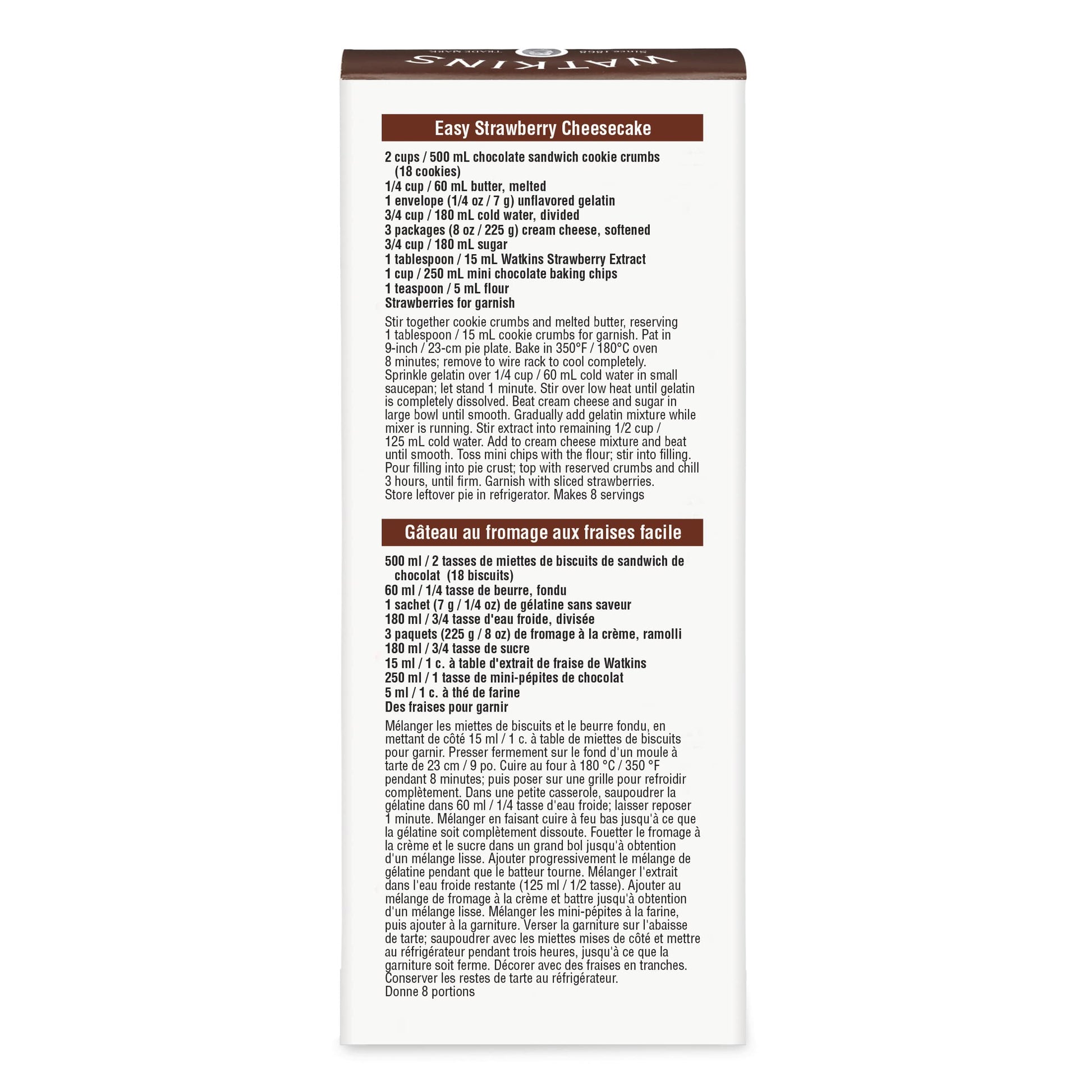 Q: What is Watkins Strawberry Extract used for?A: Watkins Strawberry Extract is perfect for adding natural strawberry flavor to a variety of recipes, including baked goods, desserts, smoothies, and beverages.