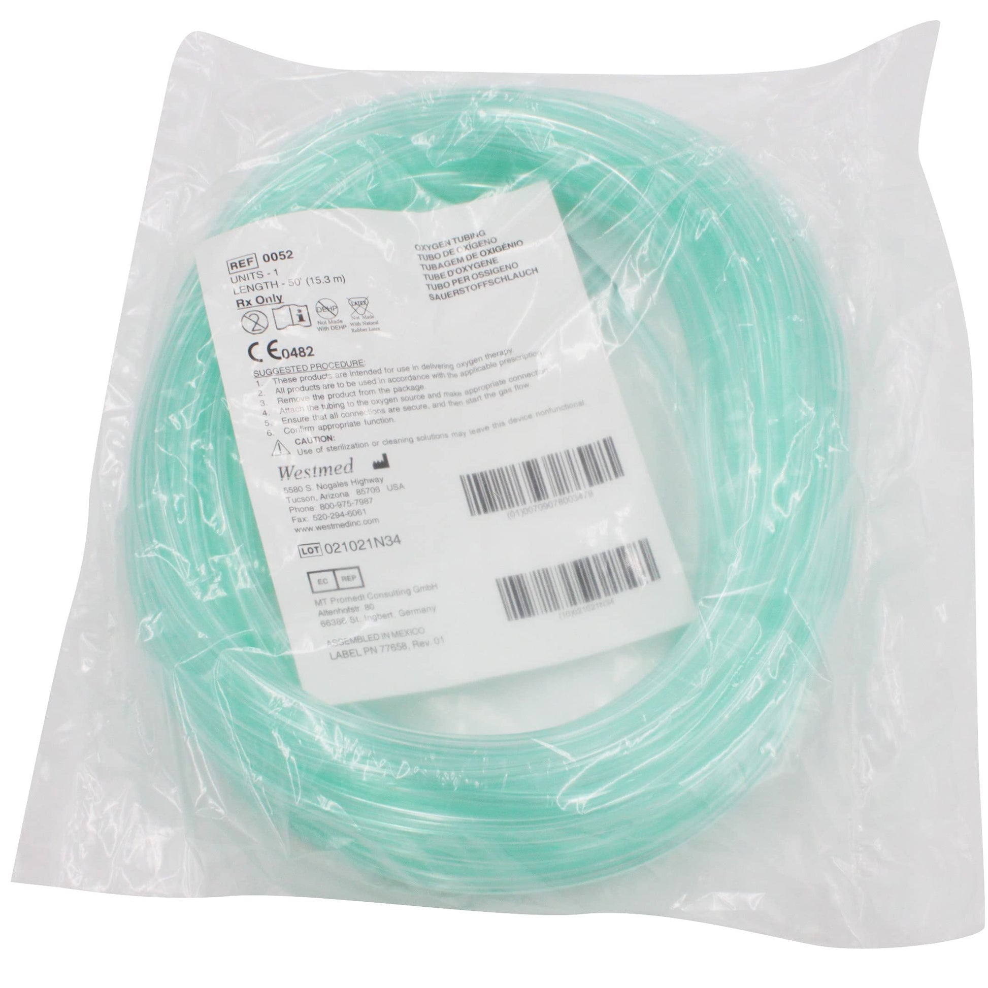 Q: What is the length of the Westmed #0052 Oxygen Supply Tubing?A: The Westmed #0052 Oxygen Supply Tubing is 50 feet long, providing ample length for various setups and configurations.