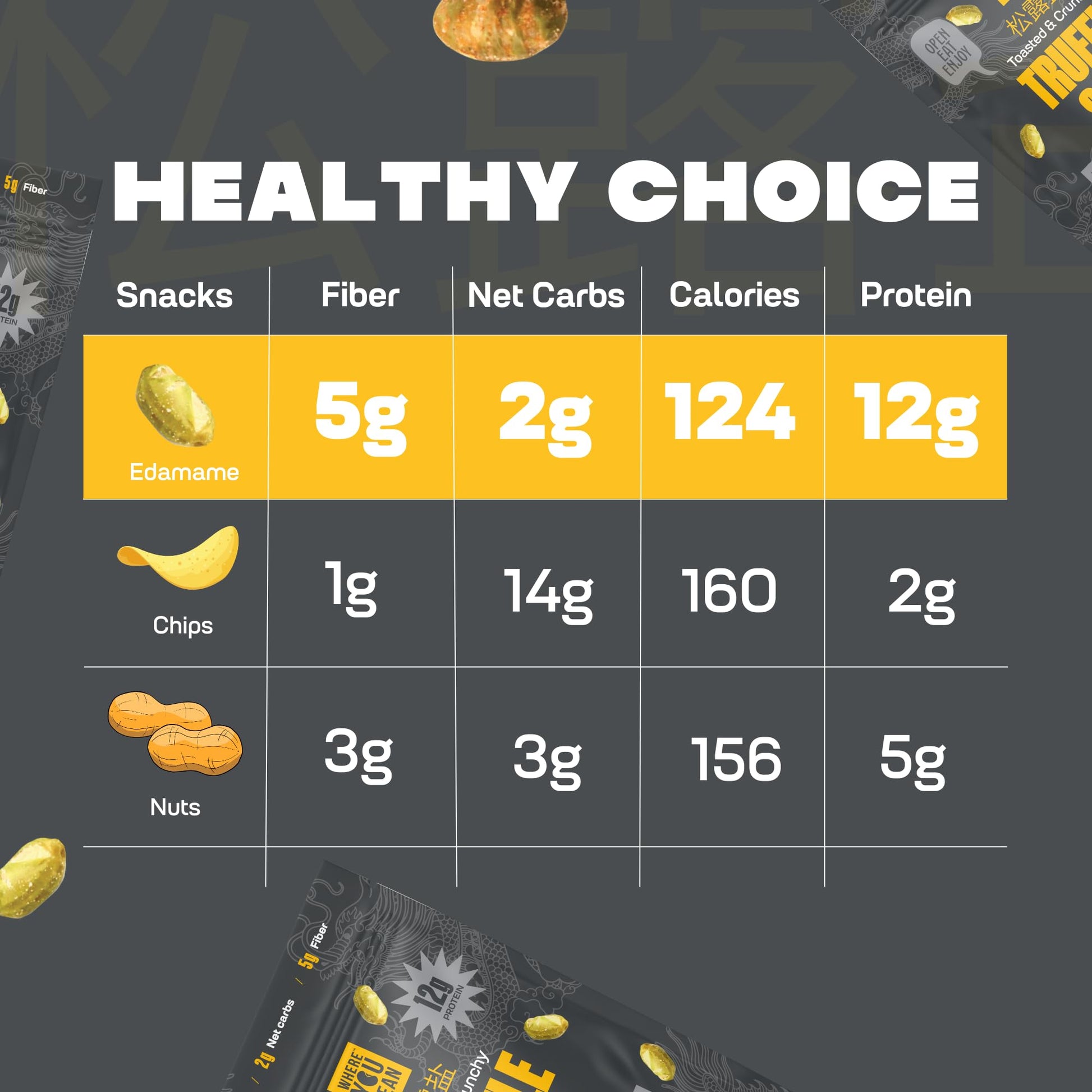 Q: How do these edamame beans compare to traditional snacks like chips?A: Where You Bean Edamame Beans Snacks are a healthier alternative to traditional snacks like chips. They are crunchy, packed with protein, and contain no added sugars, providing a guilt-free way to satisfy your snack cravings.