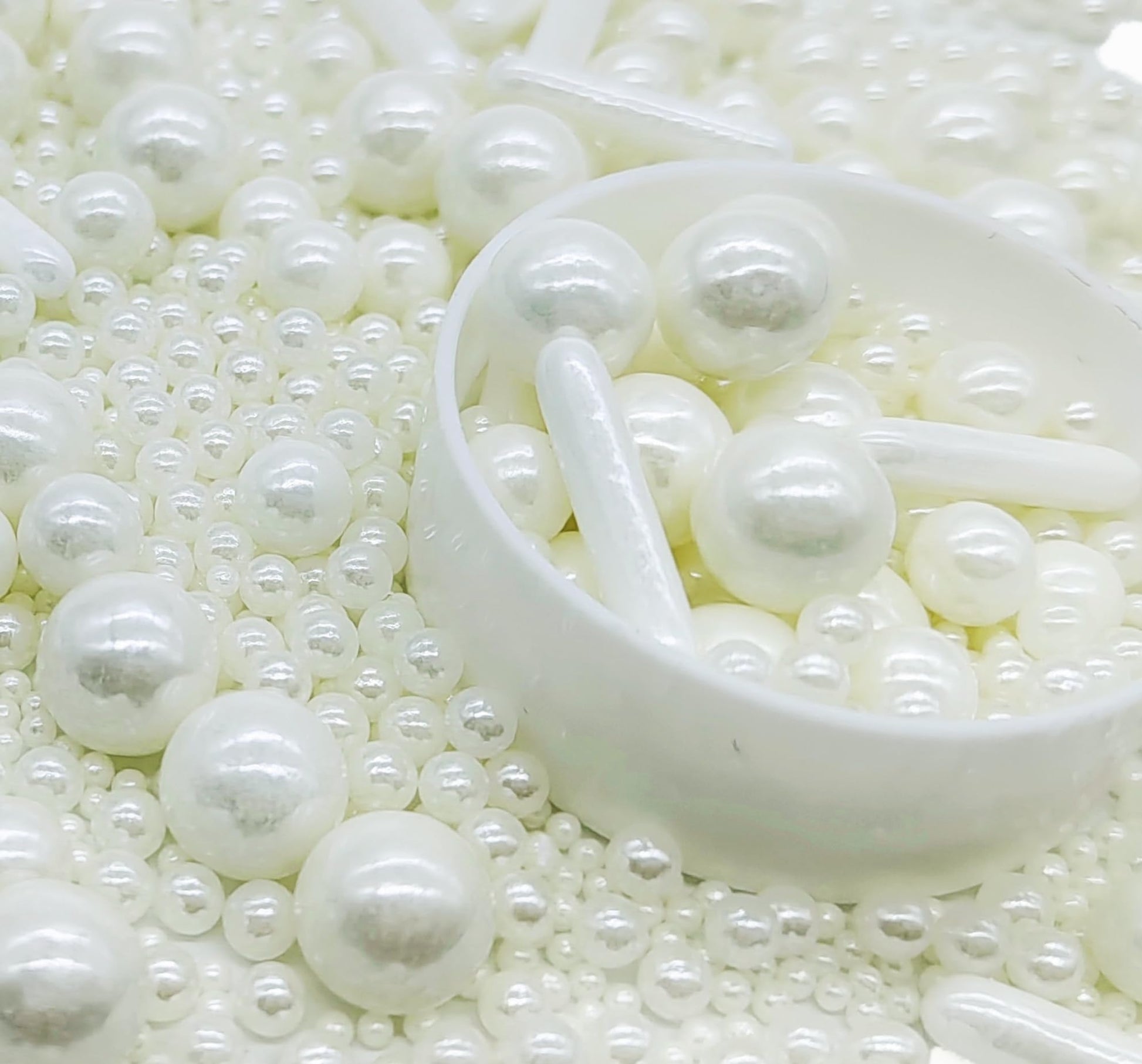 Q: Can I combine these sprinkles with other decorations?A: Absolutely! These white candy pearls can be easily combined with other toppings like chocolate chips, colored sprinkles, or edible glitter to create unique and personalized decorated treats.