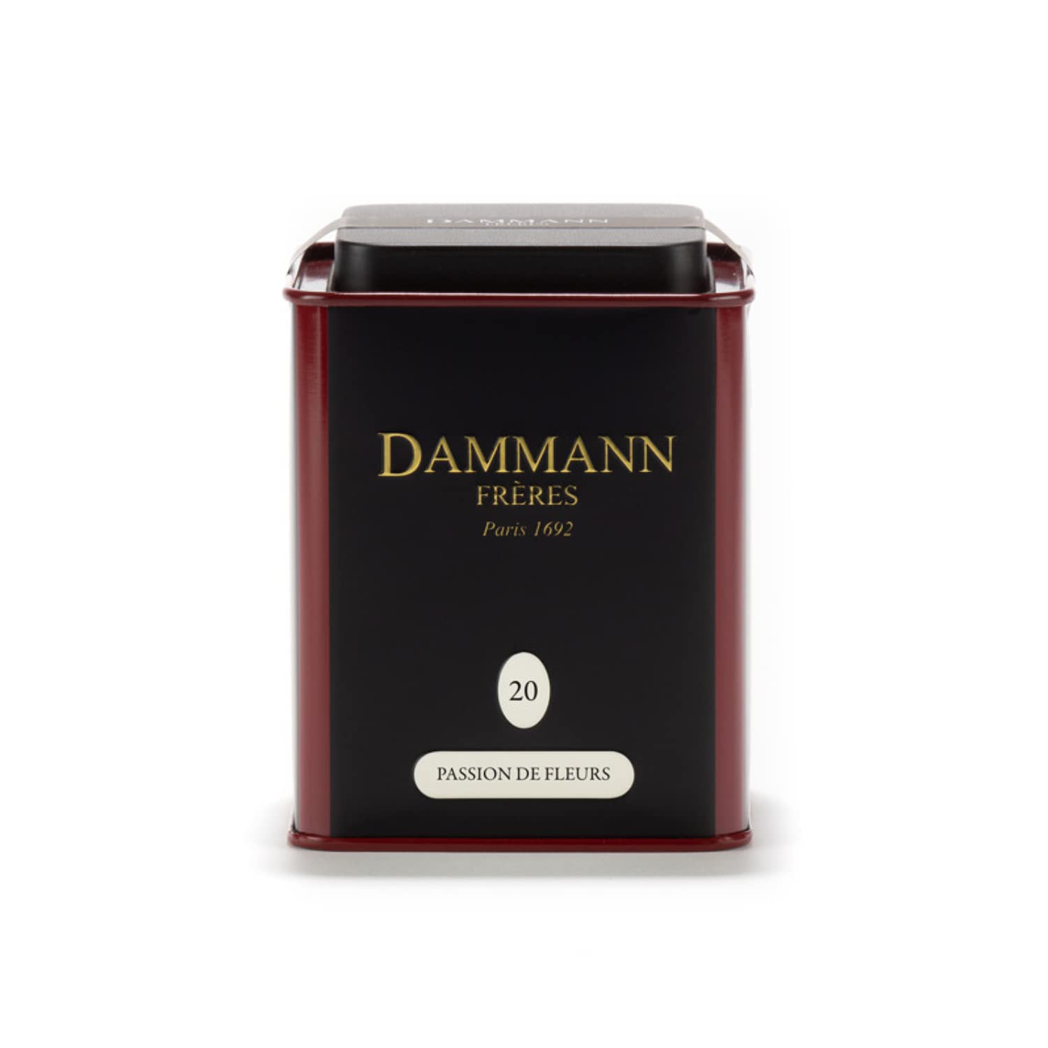 Q: What are the main ingredients in Dammann Frères White Tea - Passion de Fleurs?A: The main ingredients include white tea, flower petals, flavors of apricot and passion fruit, and rose essential oil, creating a delicate and aromatic blend.