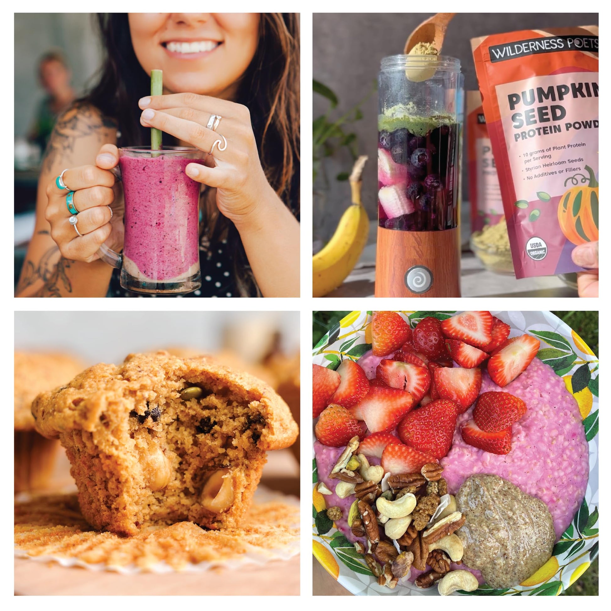 - Q: What are the main ingredients in Wilderness Poets Pumpkin Seed Protein Powder? A: Wilderness Poets Pumpkin Seed Protein Powder is made from 100% organic, cold-pressed Styrian pumpkin seeds that are heirloom and hull-less, sourced from Austria. There are no additives, sweeteners, fillers, or gums included.