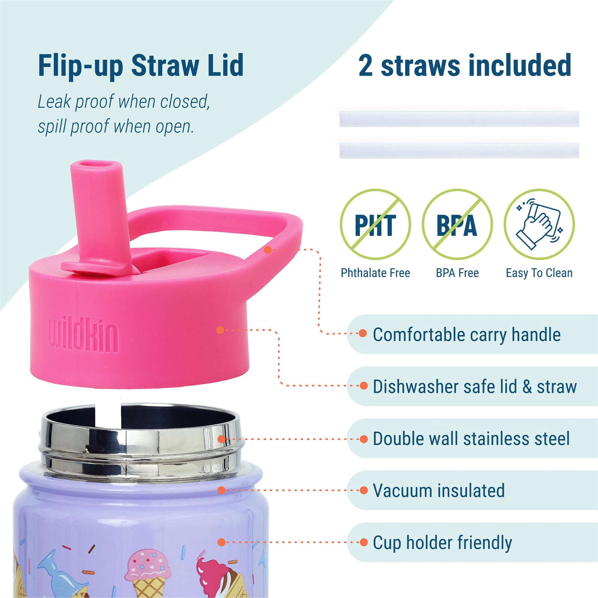 Grow Up With Us: Wildkin, A Household Name In Children'S Products, Is A Small Business Proudly Based In Nashville, Tennessee. We Offer Backpacks, Lunch Boxes, Sleeping Bags, Bedding, And More For Toddlers, Kids, And Teens! Your Kids Will Love Our Designs And You'Ll Love Our Quality And Pricing! We Make Fun, And Safe Gear For Kids. We Offer Quality Products With Coordinating Accessories That You Can Mix And Match. Our High-Quality Bedding Lines Include Comforter Sets, Sheet Sets, Pillow Options, All For Boys And Girls. Decorating Your Kids Room, No Problem, We Also Offer Clocks, Furniture, And Rugs. Product Functionality And Safety: The Small Water Bottles Are Just-Right Size Perfect For Keeping Your Child Hydrated. Whether Your Little One Is Hanging Out At Home Or Riding The Bus After A Busy Day At School, They'Ll Love Having Their Small Water Bottles By Their Side. This Water Bottle For Boys And Girls Is A Safe, Durable Option That Both Kids And Parents Will Love. Reusable Water Bottle Key Features Include; Girls And Boys Water Bottle Includes 1 Kids Stainless Steel Water Bottle Kids Water Bottles Flip-Top Straw, Designed To Prevent Spills And Messes Sports Water Bottle With Leak Proof Clear, Glass-Like Appearance Boys And Girls Water Bottles 14 Oz Size Fits Most Cup Holders Stainless Steel Water Bottle With Straw Is Lightweight And Durable Kids Water Bottle For School Is Dishwasher Safe 90 Days Warranty Against Defects: We Aim For A Happy Customer Experience! All Of Our Toddler Water Bottle With Straw Feature A 90-Day Manufacturer'S Warranty Against Defects - Normal Wear-And-Tear, And Misuse Excluded. Rigorously Tested To Ensure That All Parts And Materials Conform To Rules And Regulations Set Forth By The Consumer Products Safety Commission. Click Add To Cart Now And Let Your Little Ones Experience Convenience And Comfort With Our Water Bottle For Girls And Boys!