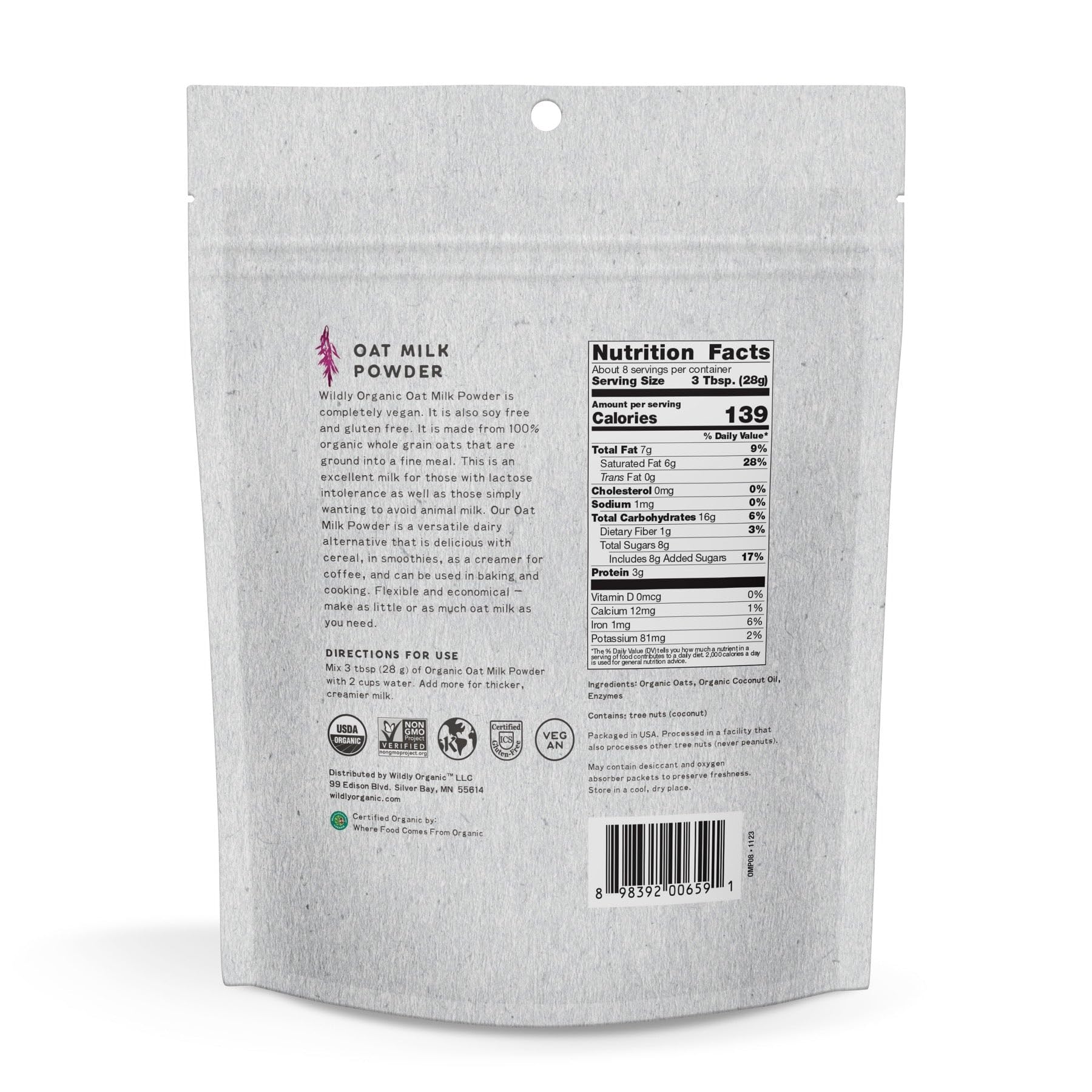 Q: Is Wildly Organic Oat Milk Powder vegan and gluten-free?A: Yes, Wildly Organic Oat Milk Powder is vegan, dairy-free, and gluten-free. It contains no artificial colors or preservatives, making it a great choice for plant-based diets.