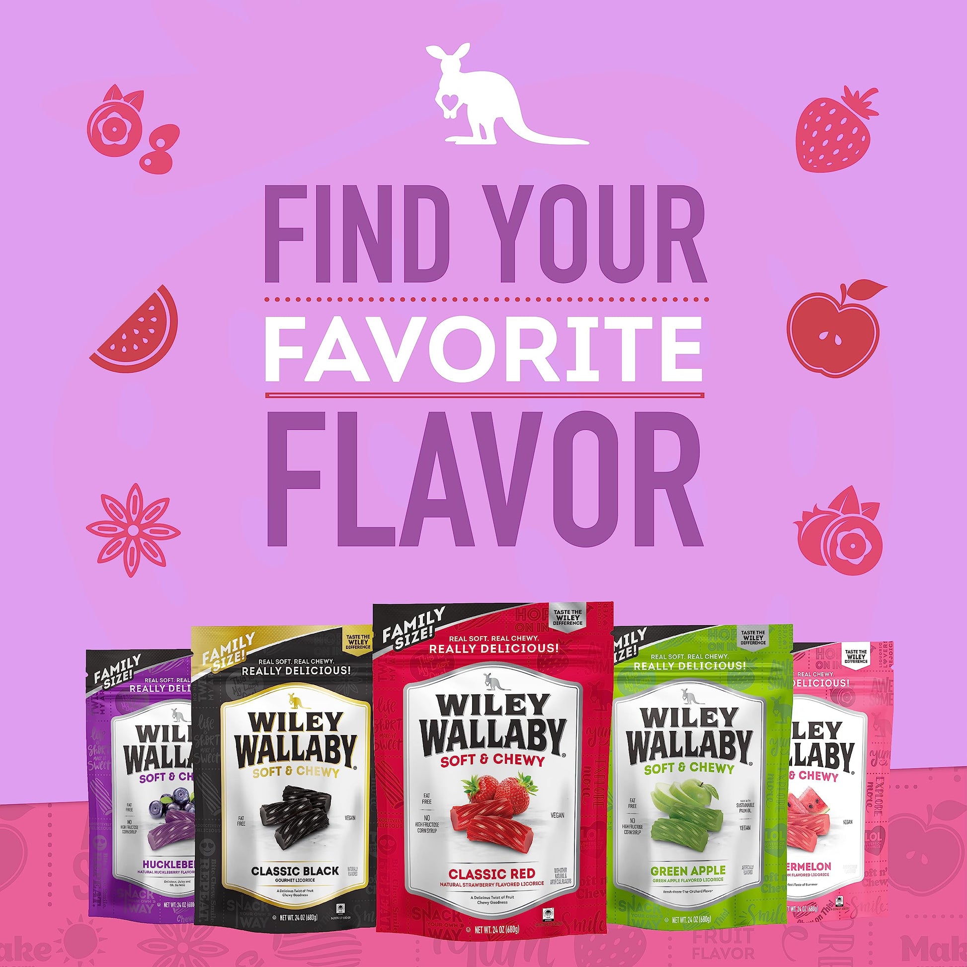 Licorice Lovers Rejoice Finally That Tough, Flavorless Licorice Can Be A Thing Of The Past. Wiley Wallaby Licorice Has Big Bold Flavors And A Soft Chewy Texture Your Heart (And Stomach) Really Desires! Bff: Best Fruit Flavor We Packed Wiley So Full Of Fresh Fruit Flavors, There Was Less Room Left For The Things You Could Do Without. Less Sugar, Fat Free And Absolutely No Dairy Or High Fructose Corn Syrup - Now Your Conscience Can Be Clear While You Enjoy Our Our Wiley Fruit Flavors. Win-Win-Win! Bite. Chew. Smile. Repeat. Whether On Your Own Or With Your Favorite People, Wiley Makes The Perfect Mess-Free Snack Anytime, Anywhere! So The Next Time You'Re Headed To The Movies, Out On A Hike, Or Meeting Up With Friends, Grab A Bag Of Wiley. Explore More We Believe That ''Status Quo'' Isn'T Always Best. That'S Why We Continually Develop New Products And Flavors - Like Our Sourrageous Drops!