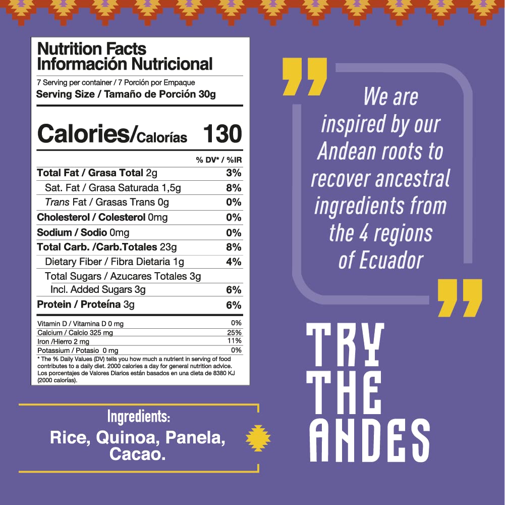Q: What are the main ingredients in Wipala Quinoa Cereal?A: Wipala Quinoa Cereal is made with just 5 natural ingredients: Quinoa, Chocolate, Non-GMO Rice, Panela (a non-refined sugar), and a touch of Andean superfoods.