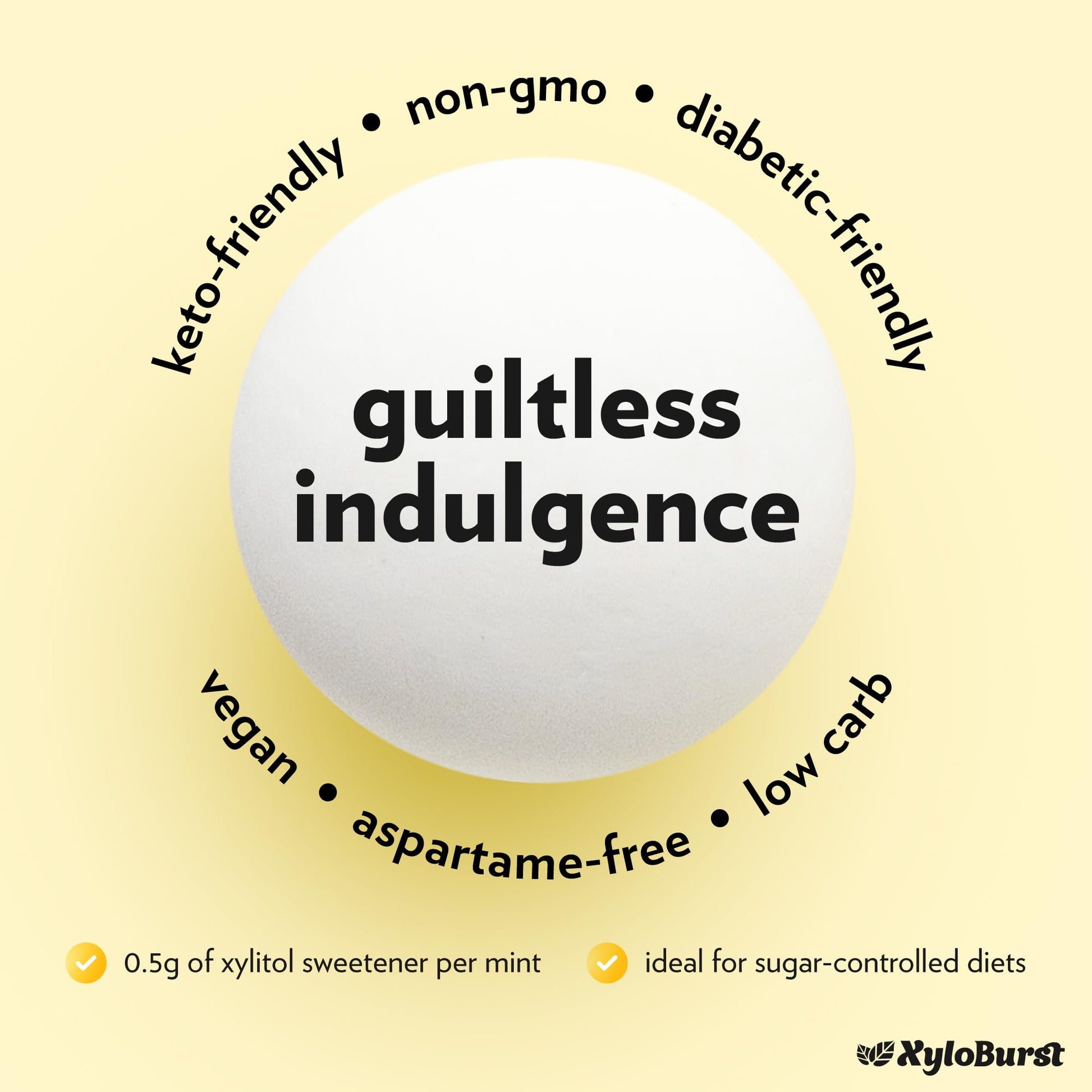 - Q: Can I use XyloBurst mints on a keto diet? A: Yes, XyloBurst mints are keto-friendly as they are sugar-free and low in carbohydrates. Each mint contains 0.5 grams of xylitol, providing sweetness without the calories and carbs typically found in sugar.