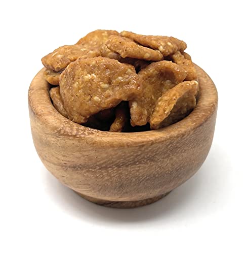 Q: How can I use YANKEETRADERS Mini Sesame Chips in my recipes?A: You can enjoy YANKEETRADERS Mini Sesame Chips as a standalone snack, or mix them with your favorite nuts for an extra crunchy treat. They can also be used as a topping for salads or desserts to add a sweet crunch.