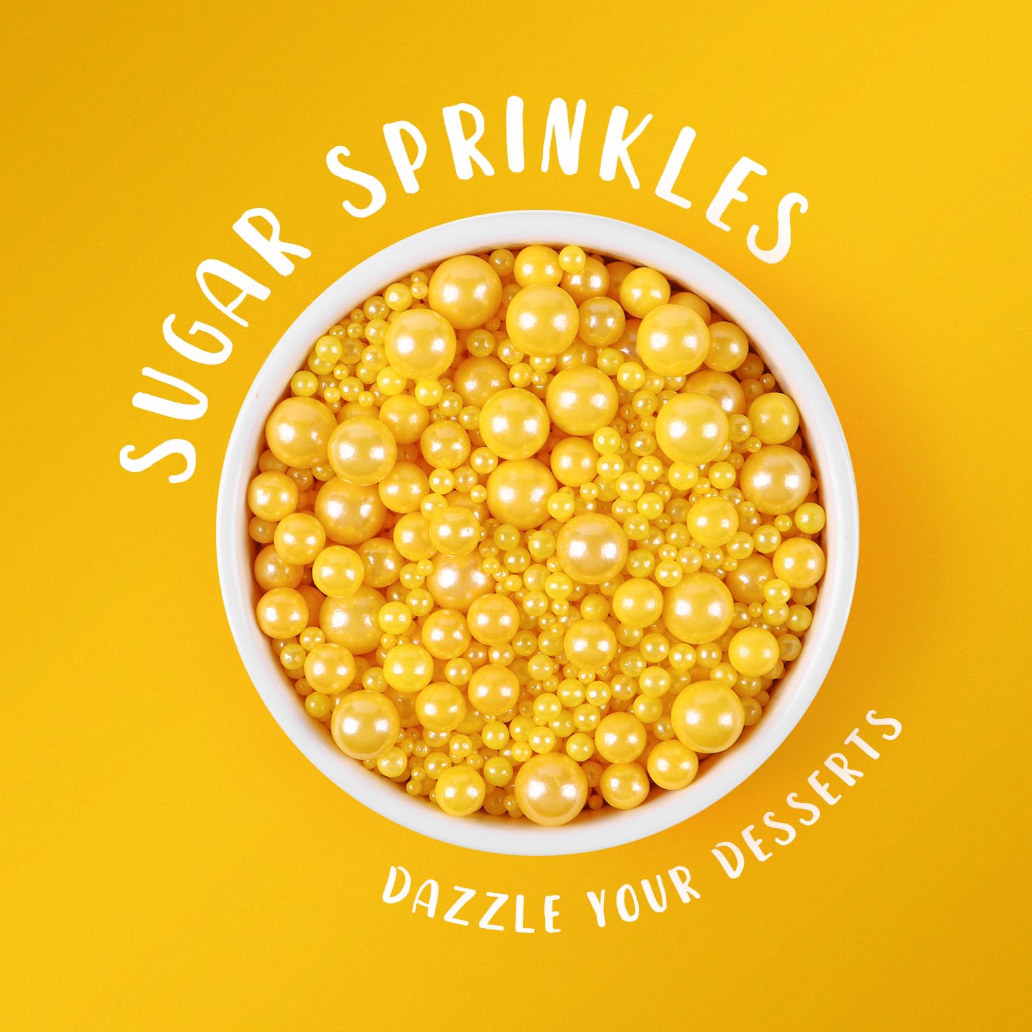 Q: What are Yellow Sprinkles used for?A: Yellow sprinkles are perfect for decorating cakes, cupcakes, cookies, and ice cream. They add a vibrant touch to desserts for various occasions, including birthdays, weddings, and seasonal celebrations.