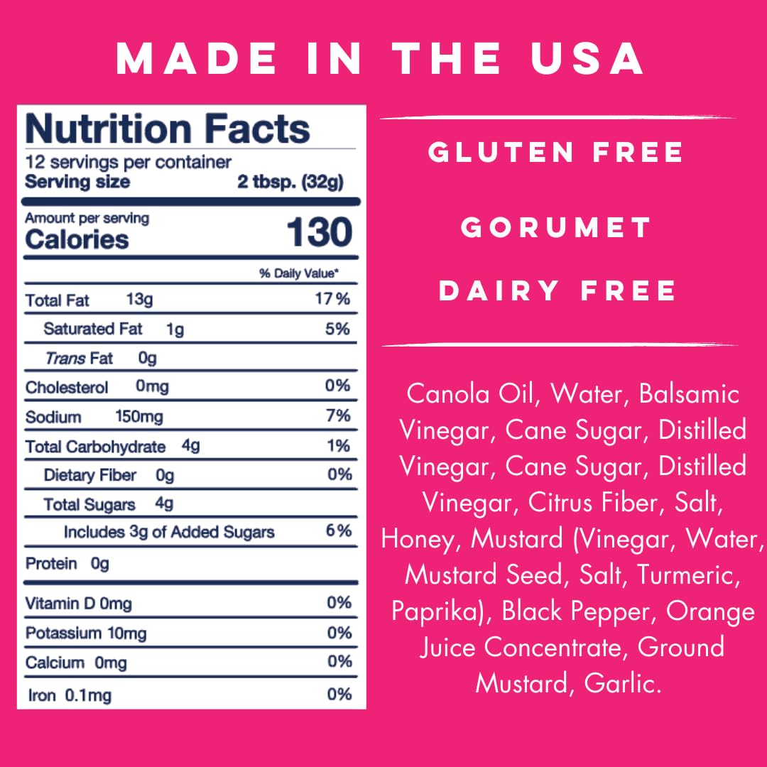 A TRULY DECADENT CULINARY EXPERIENCE. Elevate even the most mundane meals into indulgent experiences with our award-winning gourmet salad dressing and marinade. Handcrafted with Balsamic, pure honey, and fresh seasonings, our one-of-a-kind recipe perfectly balances sinfully sweet and savory flavors to keep your family coming back for more. | INDULGE GUILT-FREE. Unlike many so-called healthy salad dressings that can lead to weight gain and blood sugar spikes, our delightful Honey Balsamic dressing is lower in carbs than many of the leading brands. Enjoy it to enhance the flavor of various low-carb diets without worry. | OTHER BRANDS ARE LOADED WITH HARMFUL INGREDIENTS. Even