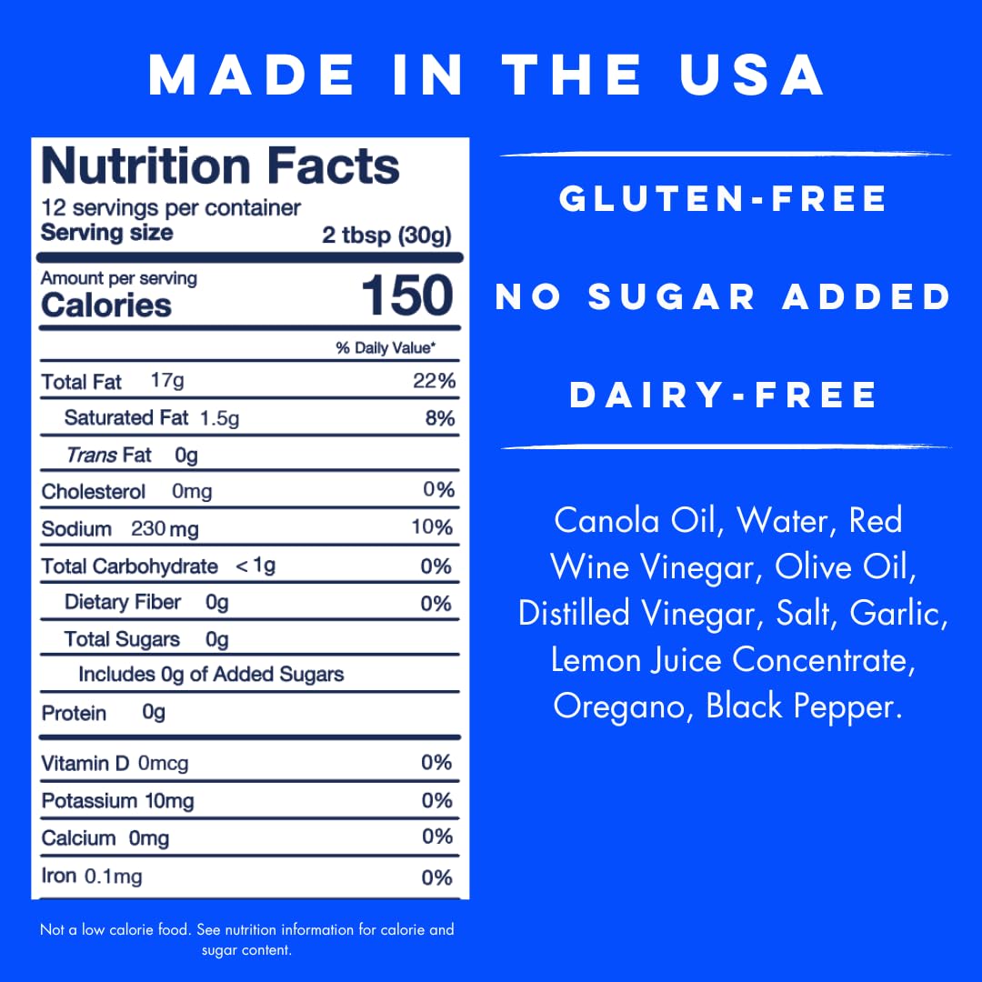 Q: How can I use this dressing in my meals?A: This versatile Greek dressing can be used to enhance salads, toss with roasted vegetables, or as a delicious dip for crudité. It also works well as a topping for fish, chicken, or burgers, making it a great addition to any meal.