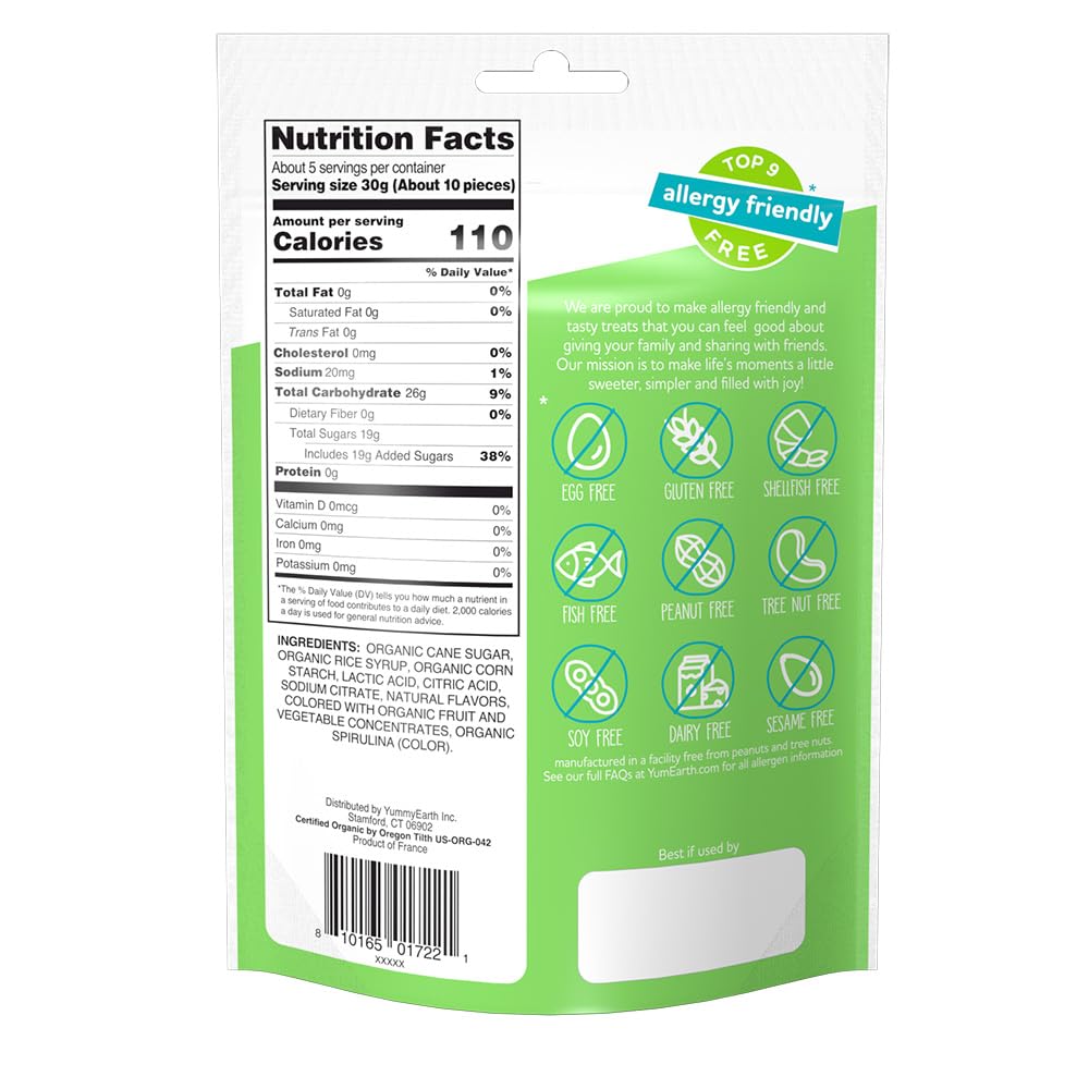 Q: Are YumEarth Organic Sour Littles suitable for people with allergies?A: Yes, YumEarth Organic Sour Littles are free from the top 9 allergens, including peanuts, gluten, tree nuts, milk, eggs, fish, shellfish, soy, and sesame, making them a safe choice for individuals with dietary restrictions.