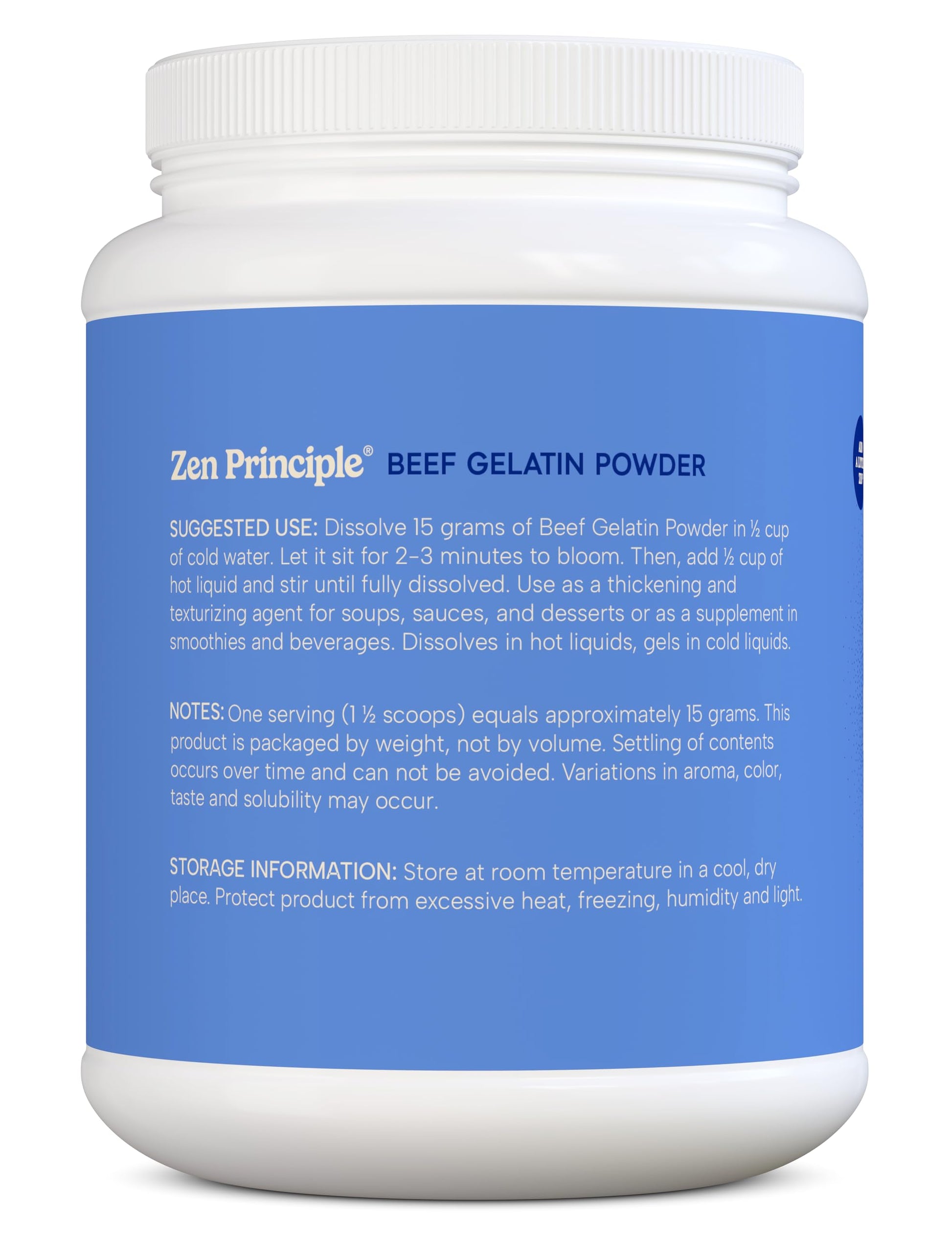 - Q: Can I use Zen Principle Gelatin Powder for baking? A: Absolutely. The unflavored gelatin powder is an excellent natural thickener for baking and can be used in recipes for marshmallows, Jello, and gummy treats.